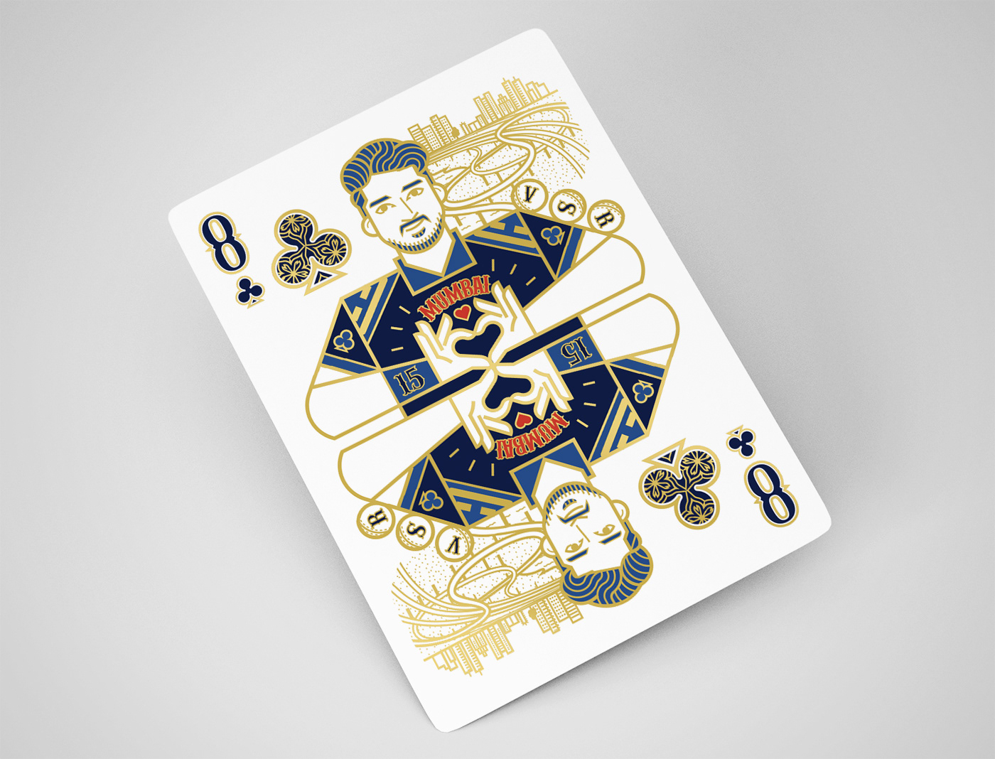 This project is a custom poker deck designed for one of the world’s most important cricket team: the Mumbai Indians.